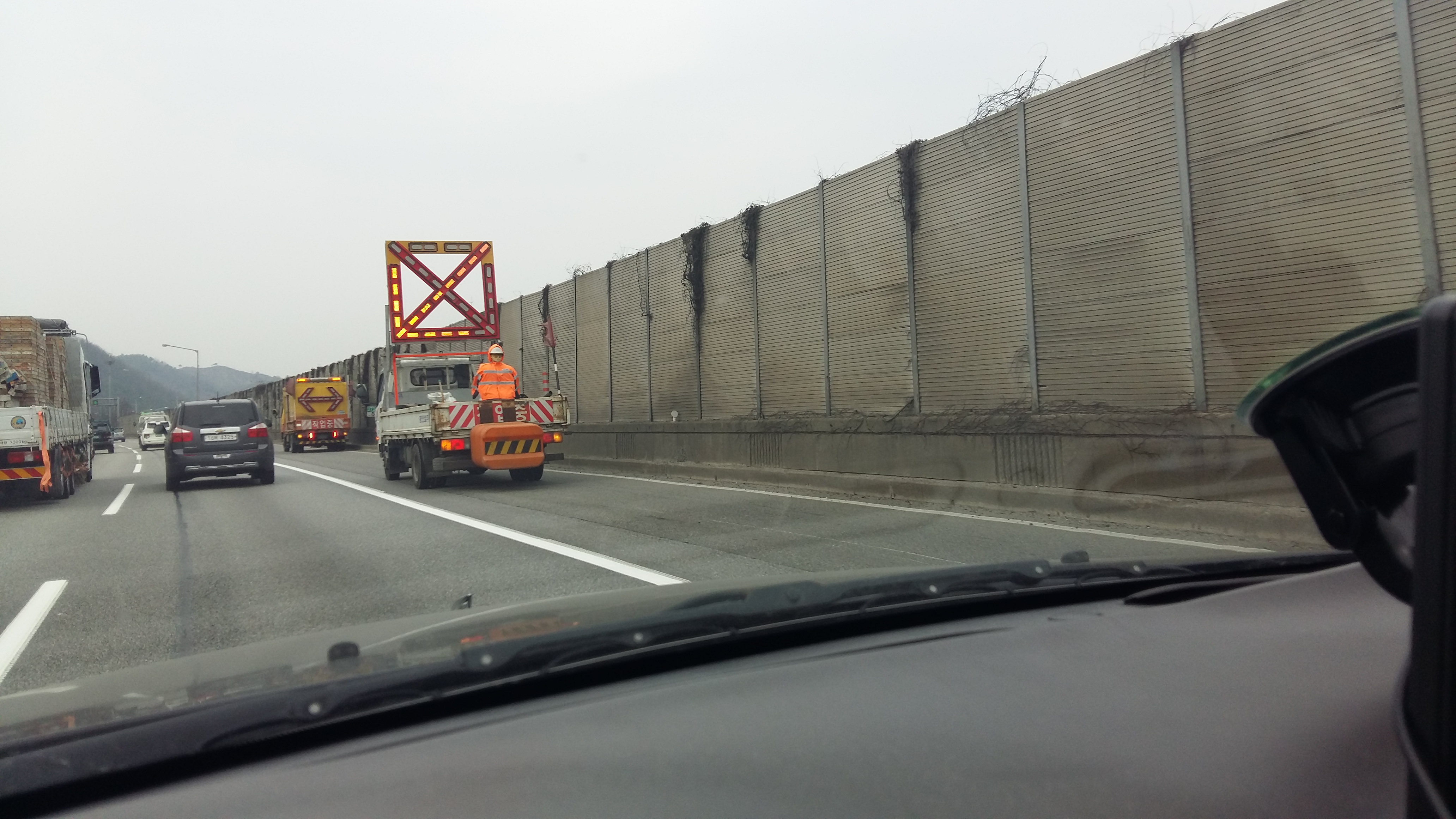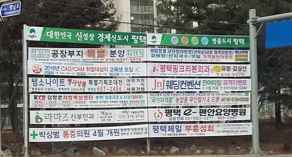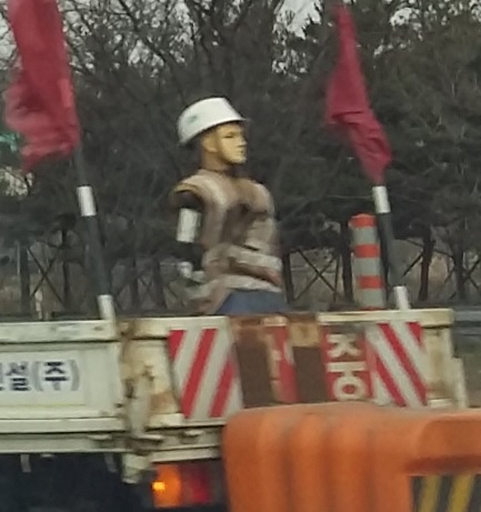 Near the DMZ in Peju on Mt. Dora is the Dora Observatory where onlookers can view several sites in North Korea. There are tourist binaculars available, but to take a photograph toward the North, you have to stand behind a line well behind those binaculars. Without recording what you see, you get a great view of North Korea from this observatory, though I did take a few pictures before I was told we couldn’t.