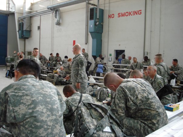 Me with Heidi minutes before reporting for deployment. — with Heidi.Me with Julia minutes before reporting for deployment. — with Julia.Me with Holly minutes before reporting for deployment. — with Holly Parr Densford.In the hanger waiting to load the buses.The mass sleeping quarters near Ramstein Air Base.Speaking to my Soldiers on the plane just before we flew out of Ramstein Air Base, Germany.The sleeping accomodations in Kuwait while we waited for a flight to Balad, Iraq.On the C-130 flying to Balad, Iraq.On the C-130 flying to Balad, Iraq.