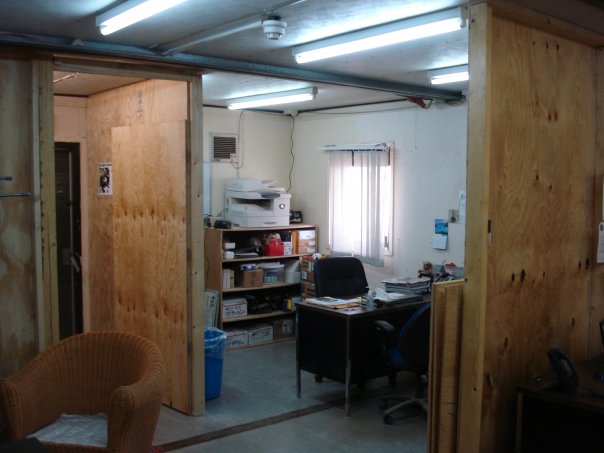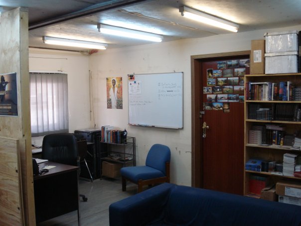 My office door (note the decal on the black part)My office-for counseling!Inside my office–always dusty!My office-stuff, with my assistant’s desk on the right.My room, also always dusty–you can’t seal the sand out!My room-homemade furniture.A mild sand storm. The color is correct-it’s like being on Mars.A mild sand storm. The color is correct-it’s like being on Mars.
