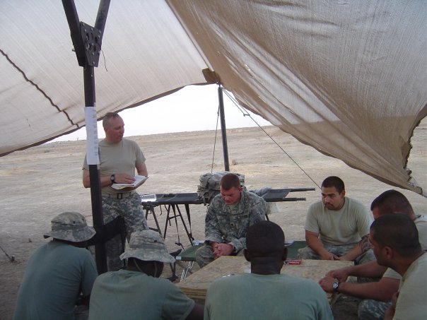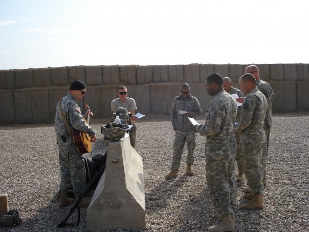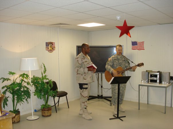 Me and a chaplain friend at Sparrowawk FARP, FOB Garyowen near Al `Amarah, Maysan, Iraq.SGT Miles playing for our Thanksgiving service at the FARP.Me speaking at our Thanksgiving service at the FARP.