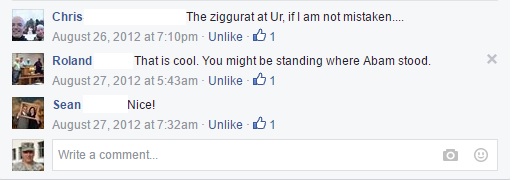 Modern-built entry gate to the Ur site.Ur archeological site.Ur archeological site (from the air-on a Blackhawk helicopter).Ur archeological site (from the air-on a Blackhawk helicopter).Me with Royal Tombs in foreground and Ziggurat in background.Ancient pottery fragment. These were all over the place!Iraqi curator with ancient cup fragment (found along side the road).The Ziggurat at Ur. It was built about 2100 BC & is about 60% original.The Ziggurat at Ur (60% original).The Ziggurat at Ur.The Ziggurat at Ur, center staircase.The Ziggurat at Ur with me in foreground.The Ziggurat at Ur.The Ziggurat at Ur, with me, Chaplain Ken & the Iraqi curator (whose grandfather was part of the early 20th century dig with Whooley).The Ziggurat at Ur with remains of Royal Palace in foreground, temple in midground-right.The Ziggurat at Ur, from the top of the center staircase (looking at top & right side staircase.Looking out over Ur from the Ziggurat.View of the Ziggurat at Ur from Abraham’s house.Remains of the palace.Remains of the palace; this stone has an indentation that a post from a door rested on (an early hinge system).The Royal Tombs at Ur.The Royal Tombs at Ur.The Royal Tombs at Ur.Temple at Ur (80% original).Temple at Ur. Concrete mix on top added by Whooley in 1920s to prevent further deterioration of structure.Temple at Ur.Temple at Ur, arch is said to be the oldest still-standing arch in the world.Temple at Ur, arch is said to be the oldest still-standing arch in the world.Temple at Ur with Iraqi curator.Temple at Ur, brick with ancient cuneiform writing.Me at Abraham’s house at Ur. Said to be so based on: age, size and inscription of Abram.Abraham’s house at Ur.Abraham’s house at Ur.Abraham’s house at Ur, original floor.Abraham’s house at Ur. Steps to roof (had 2 upstairs rooms).Abraham’s house at Ur, shelving thought to be “kitchen” but likely not. Lower 2 shelves are original.Abraham’s house at Ur. Original drain in open courtyard.Me at (or on) Abraham’s house with Ziggurat in background.I bought this painting at the Ziggurat of Ur. It was painted by a guy from Nasiriyah.