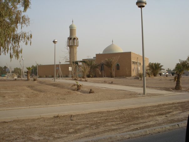 Mine is the last CHU (containerized housing unit) on the right . . .My room is 2nd floor, left door–a room with a balcony!My room-some of the conveniences of home!A view right “outside the wire”A view right “outside the wire”A local mosque now contained “inside the wire”A local mosque now contained “inside the wire”