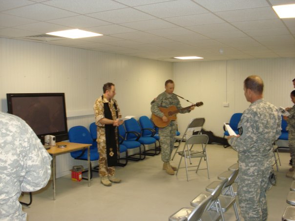 Thanksgiving service at COB Basrah. This is the Senior Joint Forces Chaplain, Padre David Moss praying the invocation for me.Thanksgiving service at COB Basrah. This is CW3 Klein leading the responsive reading.Thanksgiving service at COB Basrah. This is my assistant, SGT Miles leading one of the songs.Thanksgiving service at COB Basrah. This is my assistant, SGT Miles leading one of the songs.Thanksgiving service at COB Basrah. This is CW3 Slaughter reading the Scripture.Thanksgiving service at COB Basrah. This is me doing the preaching.