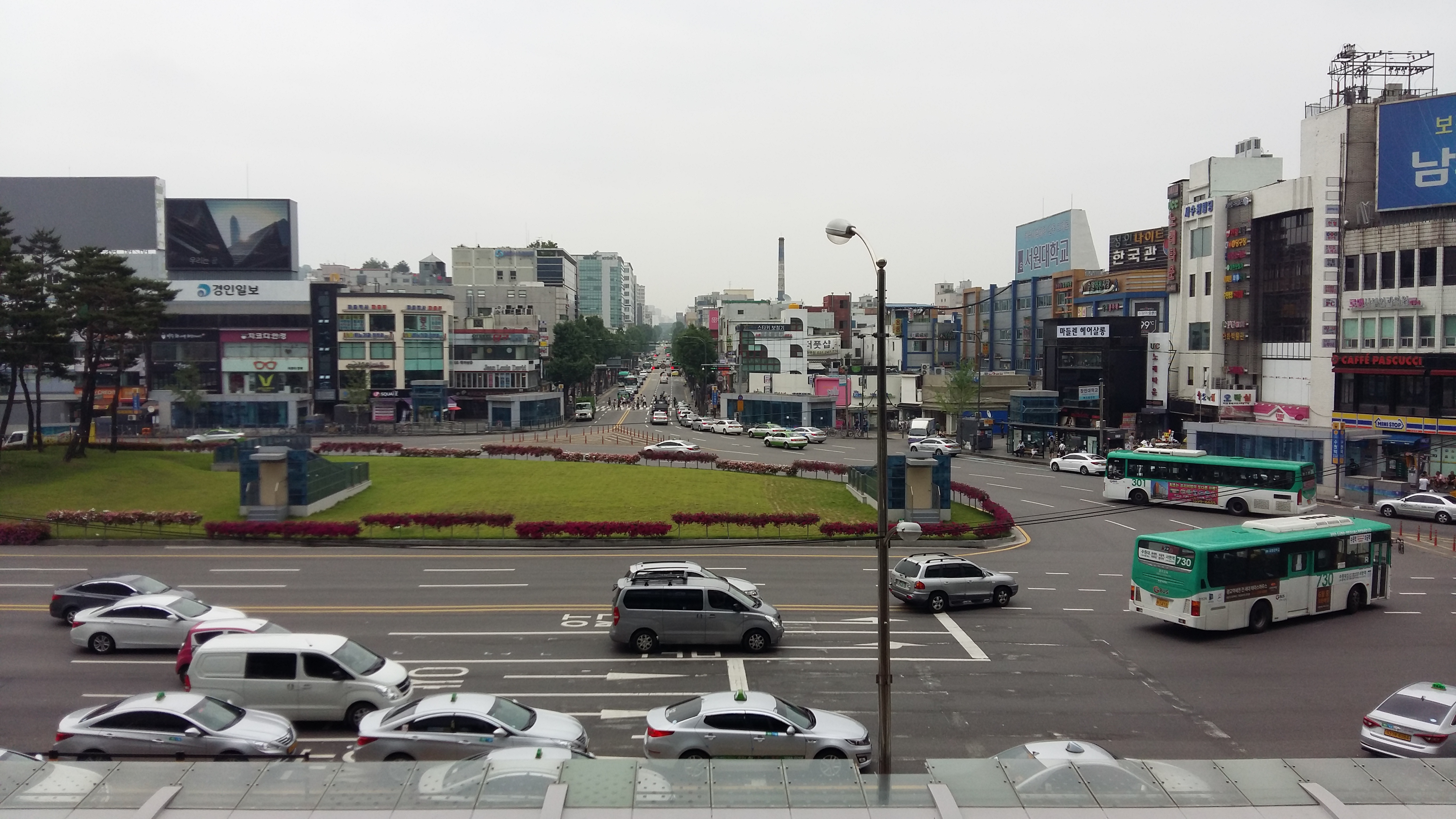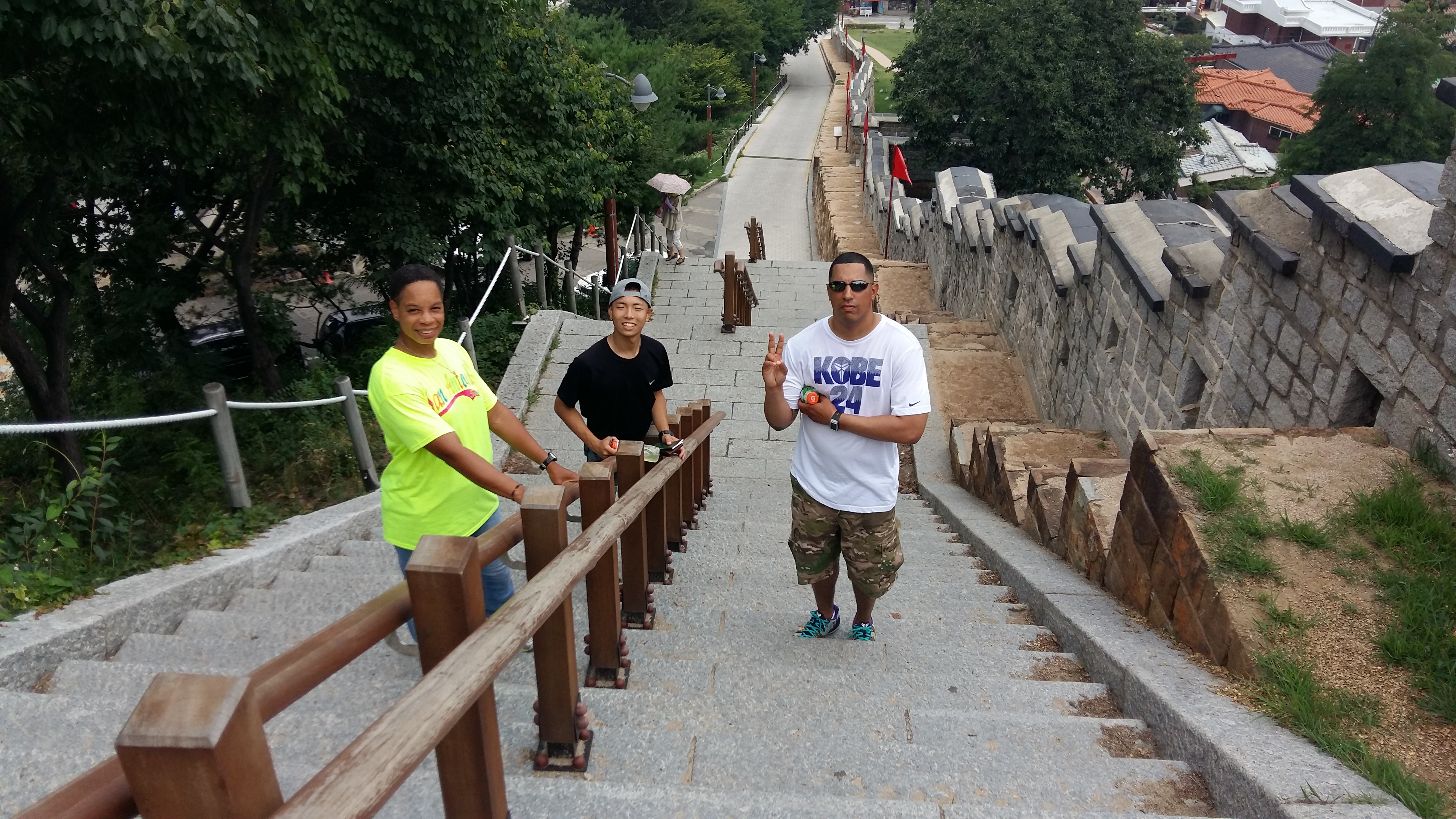 We started by meeting on post near the dining facility then taking the post shuttle to the gate. Exiting the gate, we walked to the train/subway station and got on the #4 southbound train (toward Samgakji) at the Sookmyung Women’s University stop. After changing trains in Geumjeong onto the #1 southbound (toward Gunpo), we arrived at the Suwon station. Making our way to ground level, we caught a bus (can take either the #11 or #13) to the fortress. After visiting the fortress then walking to the restaurant for lunch, we made our way back to the bus stop (again, either #11 or #13 in the same direction) for our return trip to Yongsan via the #1 northbound back to Geumjeong then the #4 northbound. On the return trip, however, we got off at the Samgakji stop which was a bit shorter of a walk onto post (and out of the now falling rain).