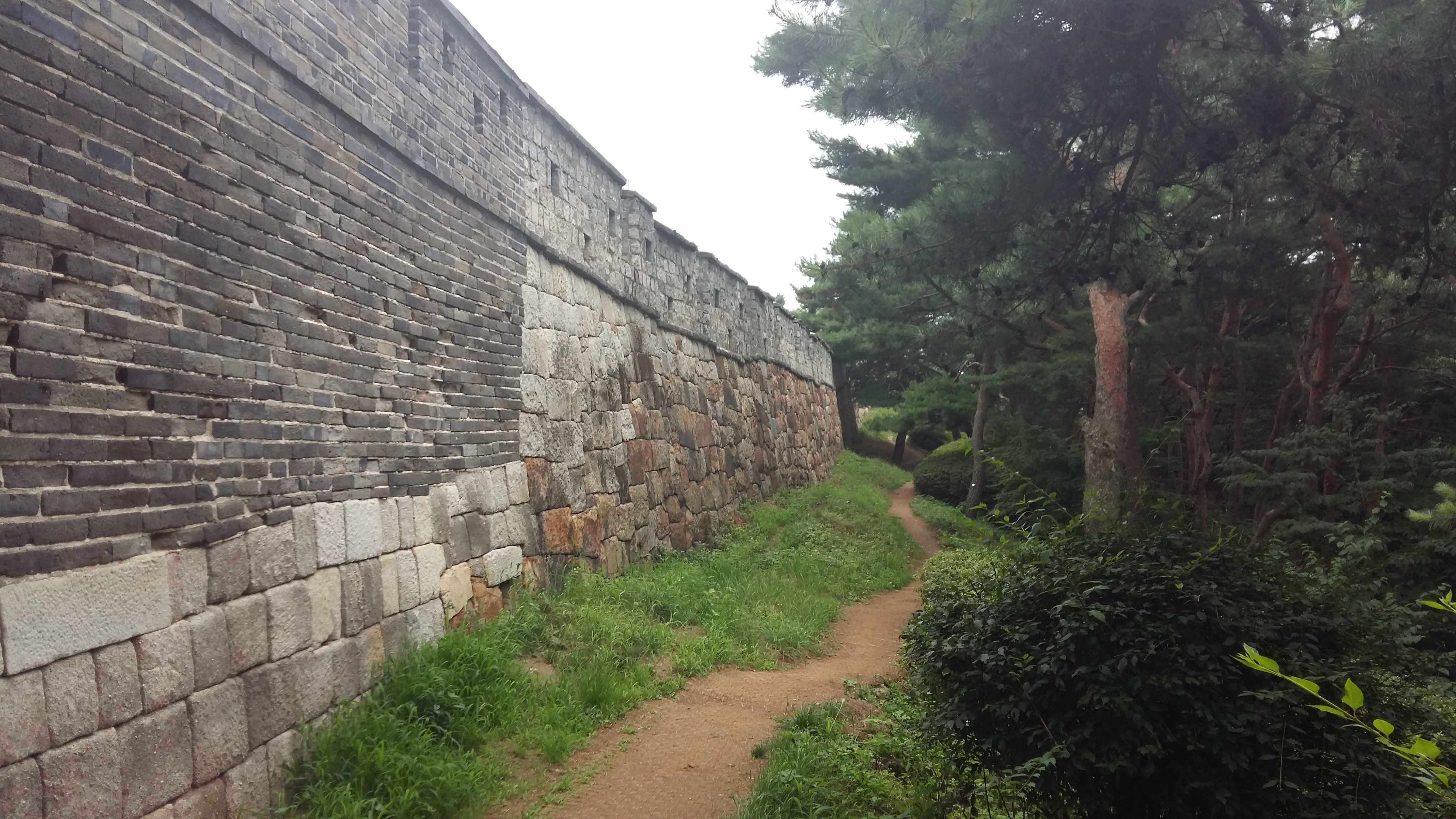 The wall is approximately 5.7 kilometers long (varies between 4 to 6 meters at different points) and was designed by the silhak scholars Yu, Hyeong-won and Jeong, Yak-yong. It is known as a unique structure in the history of architecture because of its use of stones and bricks together in a modern fortress structure to deflect arrows, spears, swords, guns, and cannons; its use of standardized materials; and its use of new scientific and practical mechanic apparatuses such as Geojunggi.
